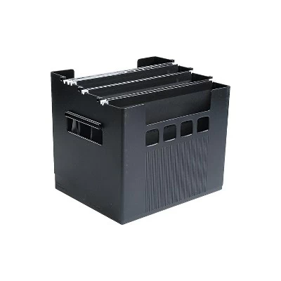 Keep important paperwork close at hand with this Pendaflex Super DecoFlex black portable desktop hanging file. Sort current clients, open projects or frequently accessed documents in this desktop hanging file. An open top provides convenient access to paperwork, and the stepped design keeps tabs clearly visible for easy reference. Four included hanging folders and tabs make it simple to set this filing system up. With a compact size, this Pendaflex Super DecoFlex hanging file fits neatly on a desktop or shelf. Boxes are an easy way to store files. Black in color and made of plastic. Letter-sized for correspondence and other documents. Dimensions: 11″”H x 12.75″”W x 10″”D. Open-top design provides convenient access to everyday files. Includes easy-grip handle for portable filing on the go. Package includes four hanging files, four hanging file tabs, and four inserts. Sold as 1 Each.