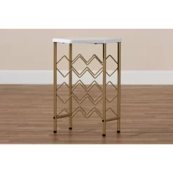 Add extravagant charm to your space with the glamourous style of the Phoebe wine rack. Made in China, the Phoebe is comprised of a gold finished metal frame and a hexagonal faux marble tabletop. The rack features storage for 12 bottles of wine, while the tabletop is well suited to hold bar supplies or decorations. Requiring assembly, this rack’s compact size and black non-marking feet allow for easy transport. Organize your wine collection in the most charming way with the Phoebe wine rack.
