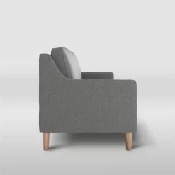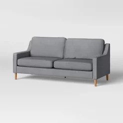 Create a sophisticated seating arrangement that’s sure to catch everyone’s eye with this Prescott Slope Arm Sofa from Threshold™. Set on natural wood legs, this loveseat has stylish solid-color upholstery with padded seat and back to provide a comfortable place to sit. Perfect to seat up to three people, this wooden-frame sofa makes an elegant addition to your living room seating arrangement, and looks especially great when paired with a coordinating coffee table or ottoman to complete the look.