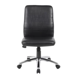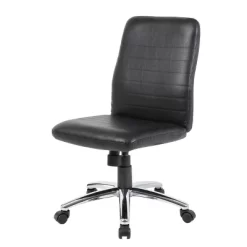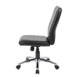 This Retro Task Chair is upholstered in Black heavy duty vinyl. It sits on a stable and stylish 25” Chrome base. It has an upright locking position feature, providing comfortable back support. The pneumatic adjustable gas lift allows for easy seat height adjustment, to help you find the personalized sitting style that suits you and your work environment. The adjustable tilt tension control knob allows you to customize the tension of the tilt. The hooded double wheel casters make it easy to move and shift directions.