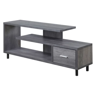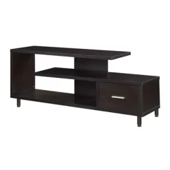 Customize your entertainment hub to fit your unique gear with the help of this Seal TV Stand from Convenience Concepts. The multi-tiered, asymmetrical shelf design gives you the flexibility to store auxiliary devices, movie collections and anything else you need to create your perfect entertainment setup. This beautiful TV stand even has a side drawer for keeping cables, adapters, remotes and all the other essentials that seem to go missing frequently.