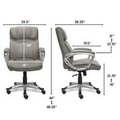 This Fabric Executive Chair from Serta is as comfortable as it is luxurious – upholstered in soft microfiber. This rolling office chair features a soft, pillowed headrest and plush layered body pillows which offer a serene and tranquil seating experience. The contoured lumbar provides exceptional support for the lower back, while the sculpted arms have pillow soft pads for added hand, wrist and forearm comfort. The waterfall seat edge is designed to reduce pressure on the back of the knee to aid in circulation and reduce fatigue. Smooth rolling multi-surface dual wheel casters provide easy access to your surrounding work area.