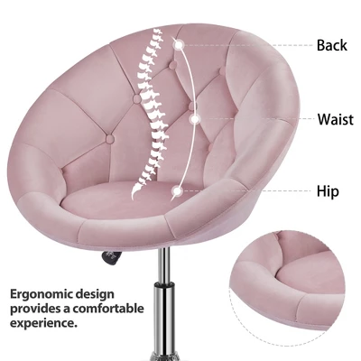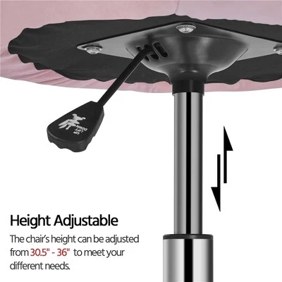 - The swivel round back seat is wrapped in flannelette upholstery and padded with foam. The metal base is/ has a sturdy construction/ finished in a shining chrome, and the swivel function puts that perfect spin on your day, whether youāre working or studying in your room. In addition, Its polished metal frame features an adjustable height design spanning 12.6″ to 18″ tall, so it can meet your various requirements of height and use.